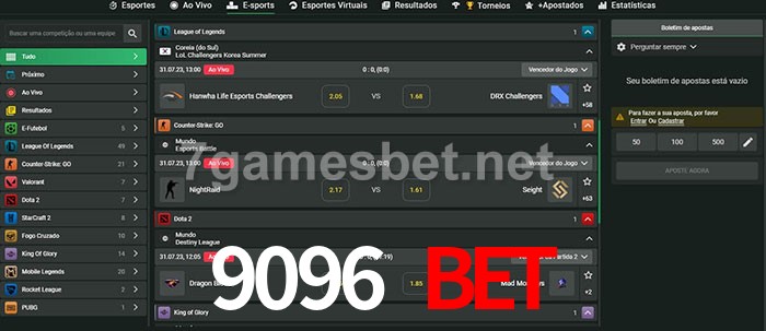 O 9096 bet oferece uma grande seleção de opções de apostas em e-sports com probabilidades competitivas